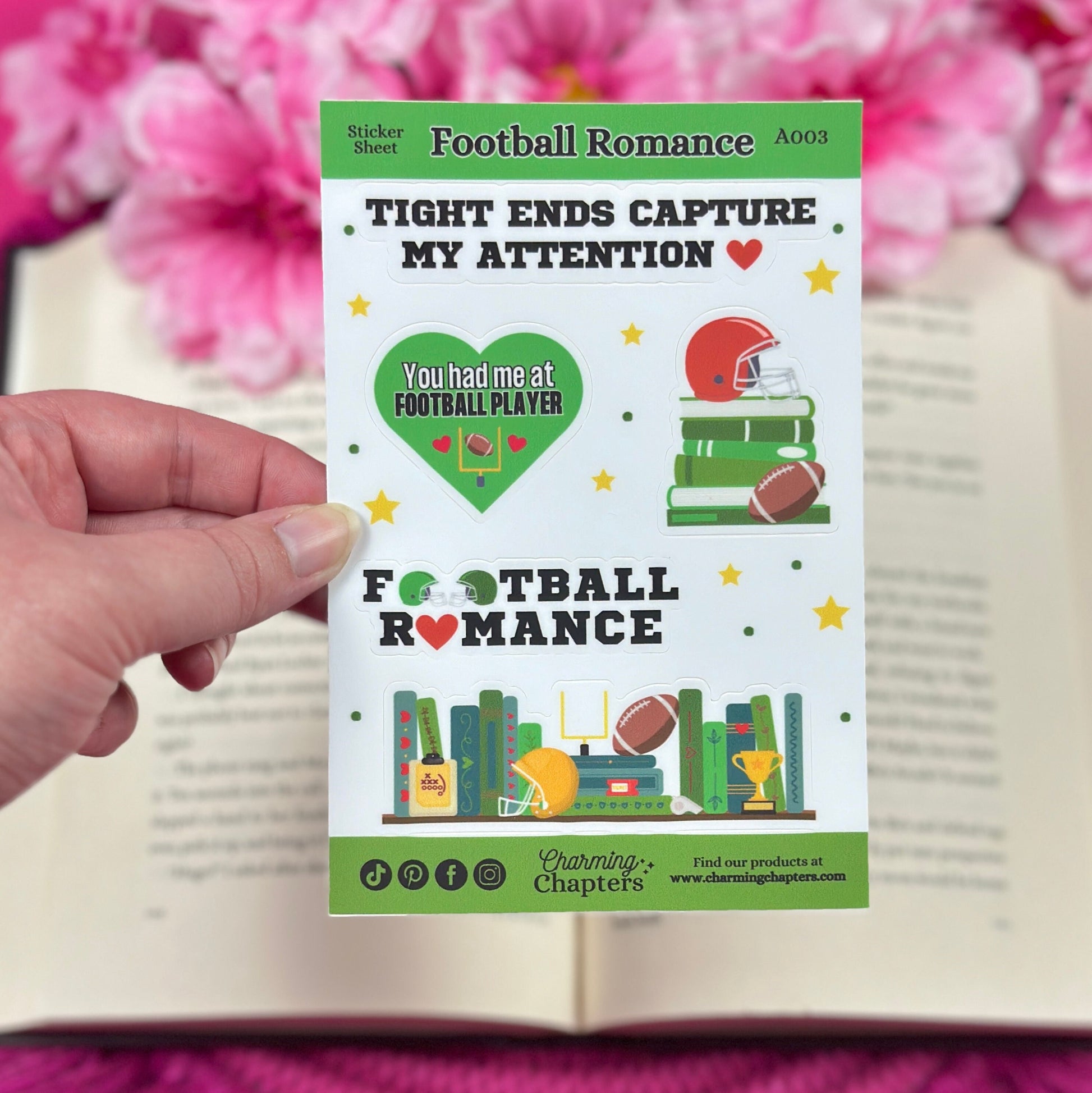 Update your planner with these fun sports romance themed stickers! Perfect as a gift for the sports loving bookworm in your life, our vinyl sheet of stickers will give your favorite reading accessories an adorable and unique look.