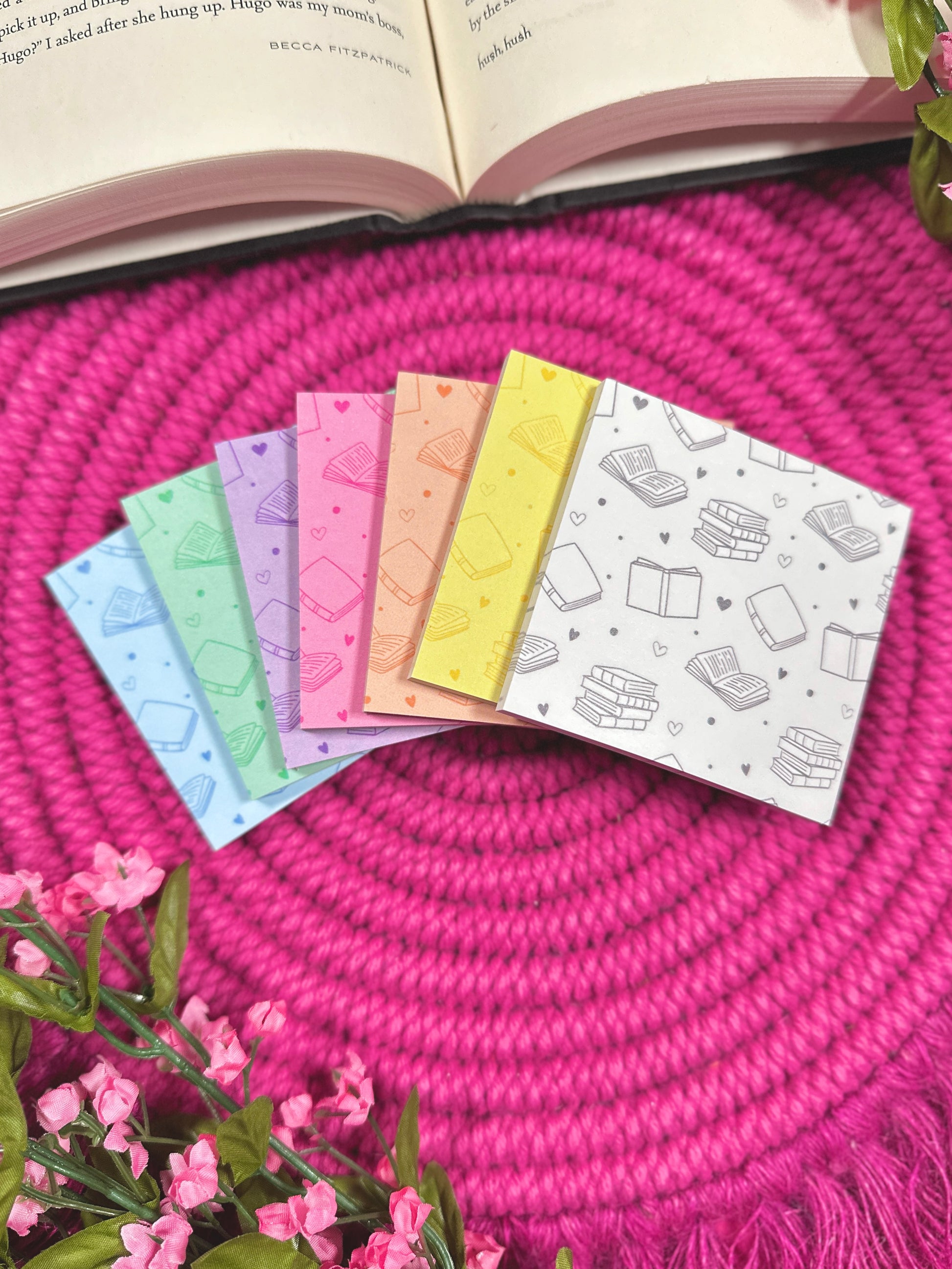 Indulge the bibliophile in your life with this bookish notepad & sticky note set! It is perfect for jotting down book ideas, notes, to-do lists, and favorite quotes! These notepads make great gifts for book lovers, teachers, writers and more!