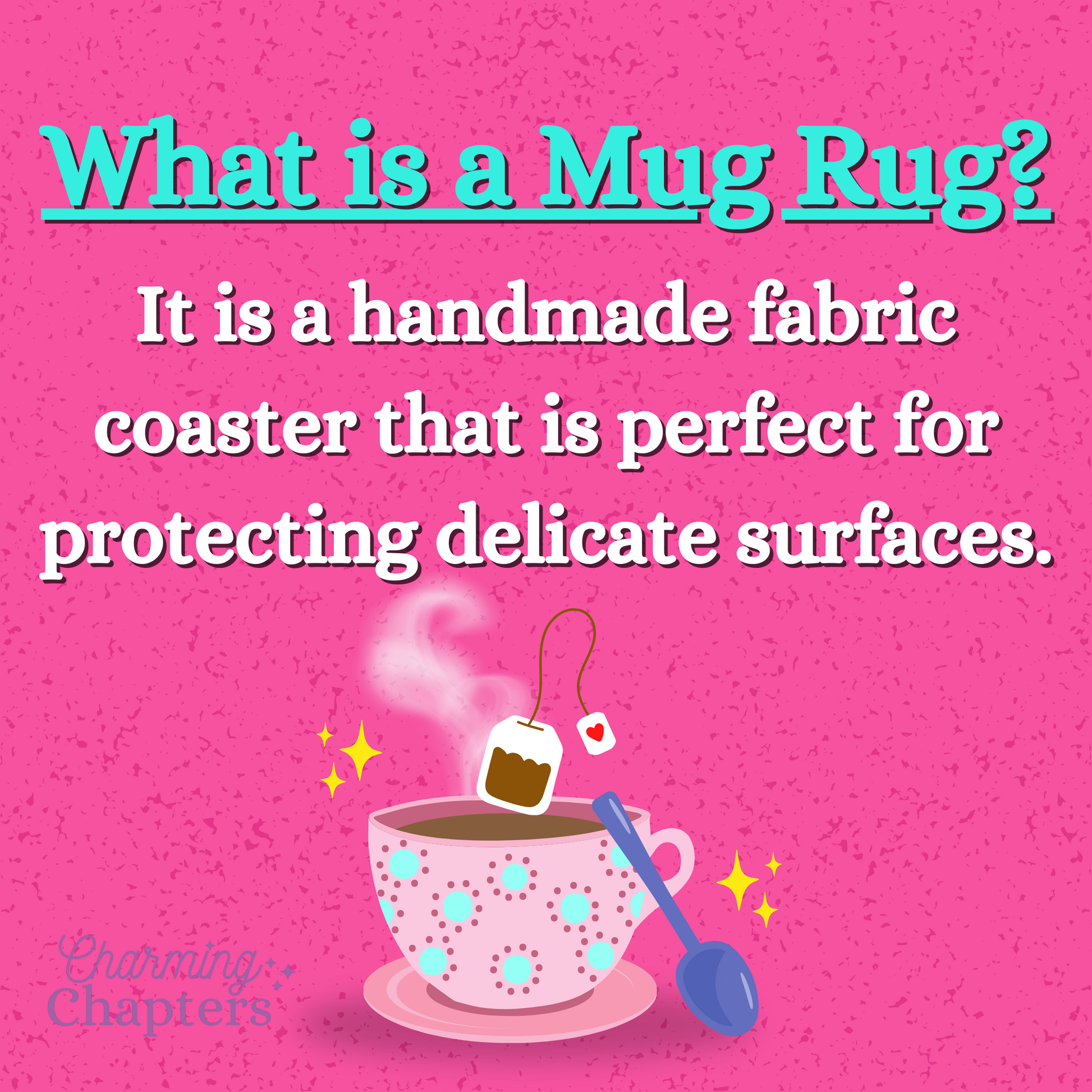 Please note that the book and props in the photograph are shown for demonstration purposes only. This listing is for the mug rug only. Each fabric coaster will vary in appearance due to fabric designs. Colors may appear different in person due to lighting and monitor settings. Our items are handmade and any uneven lines or imperfections are stitches of love! All sizes are approximate.