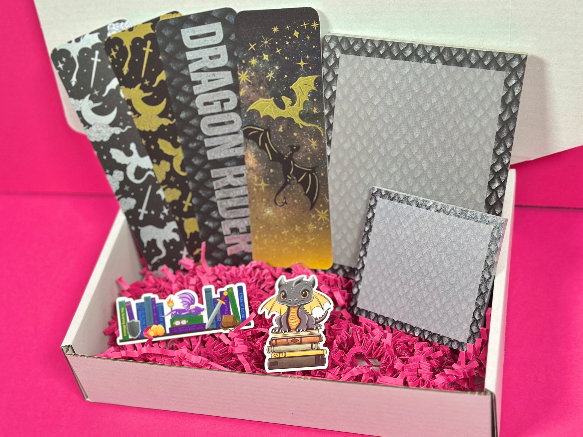 Unleash your inner dragon with this enchanting stationery set! Perfect for journaling, note-taking, and creative projects, this collection features a notepad for capturing your thoughts, colorful sticky notes for quick reminders, four beautifully designed bookmarks to mark your place in epic tales, and two dragon-themed stickers to personalize your belongings. Whether you're a fantasy fan, avid reader, or stationery enthusiast, this set brings a touch of mythical magic to your everyday writing and organizing. A delightful gift for dragon devotees of all ages!