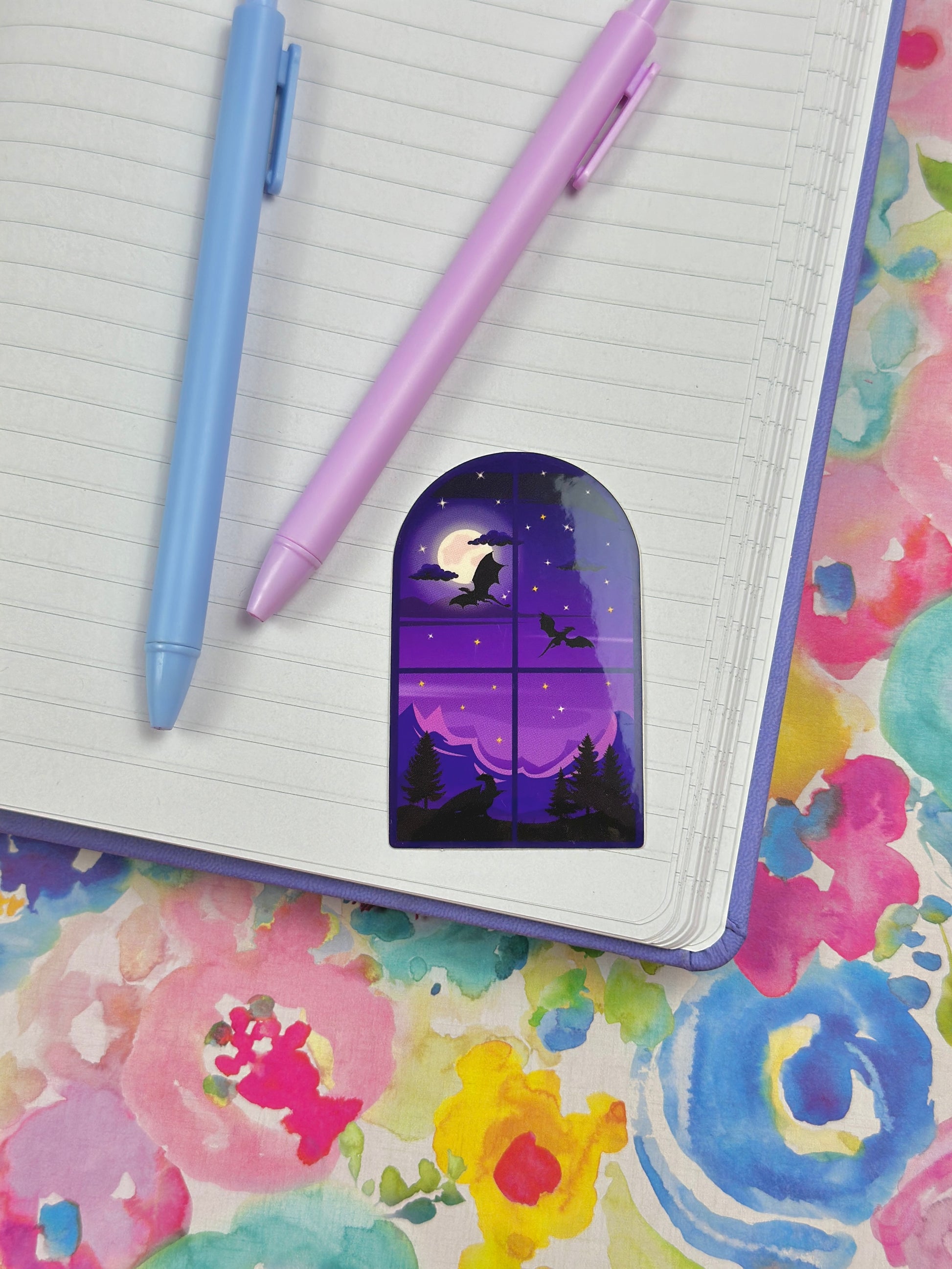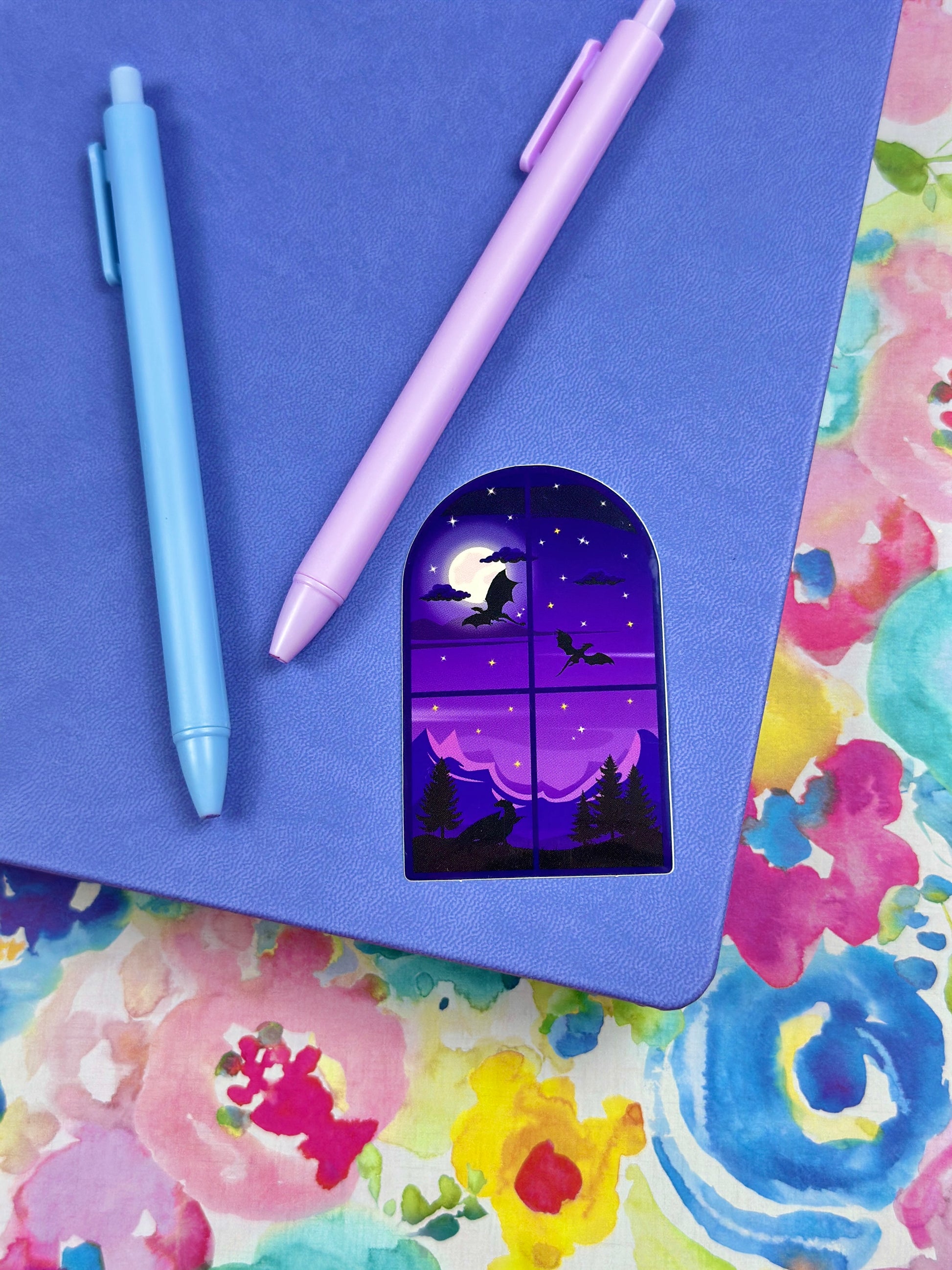 Add a magical touch to your belongings with our Flying Dragons Vinyl Sticker! Featuring vibrant dragons soaring over mystical purple mountains, this sticker is perfect for anyone who loves fantasy and adventure. Let your imagination take flight!