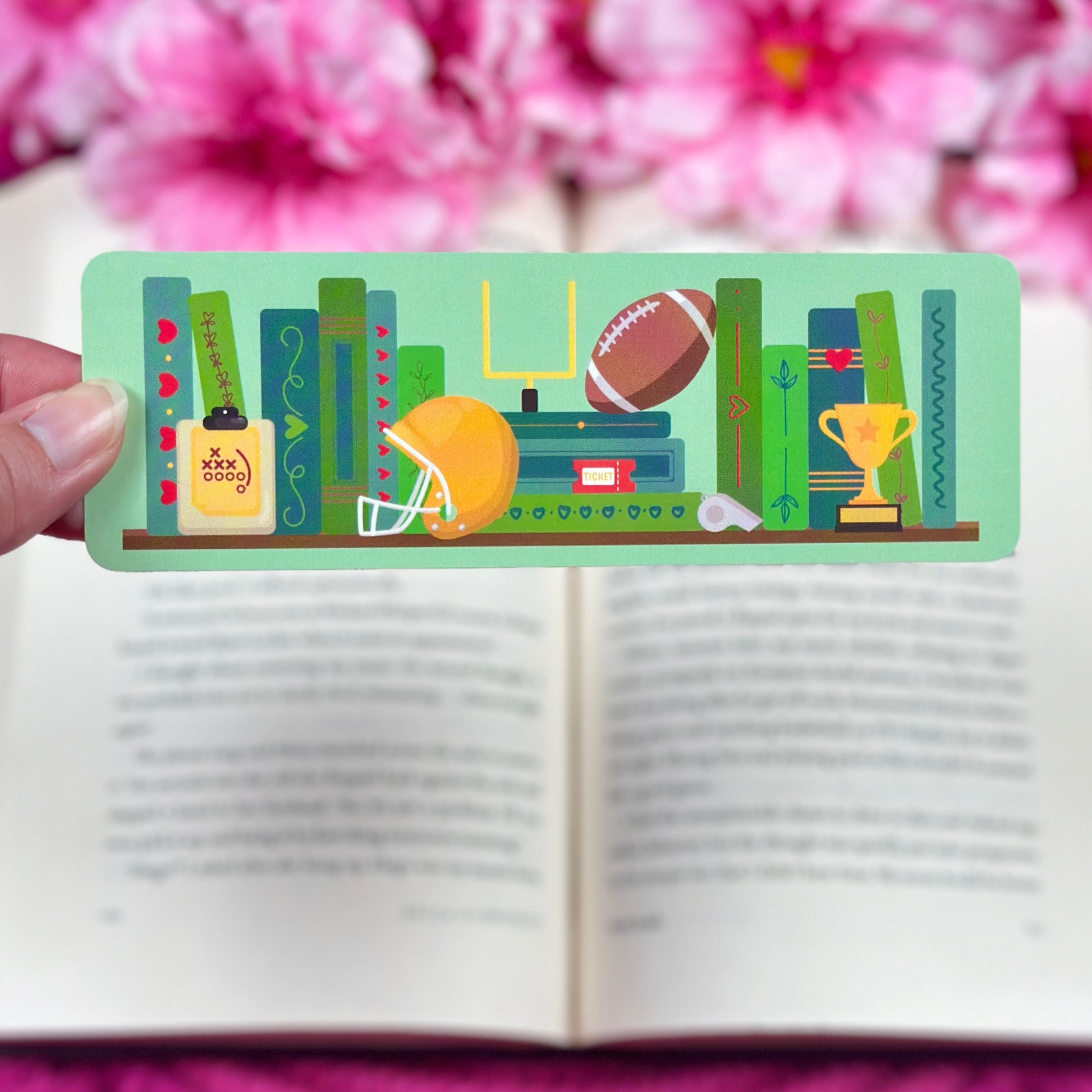 Score a touchdown for your heart with our football romance bookmark! This playful bookmark is inspired by the steamy world of sports romance books. Now you can keep your place in the game and in your favorite novel, all while adding some fun and romance to your reading experience. (Game on!)