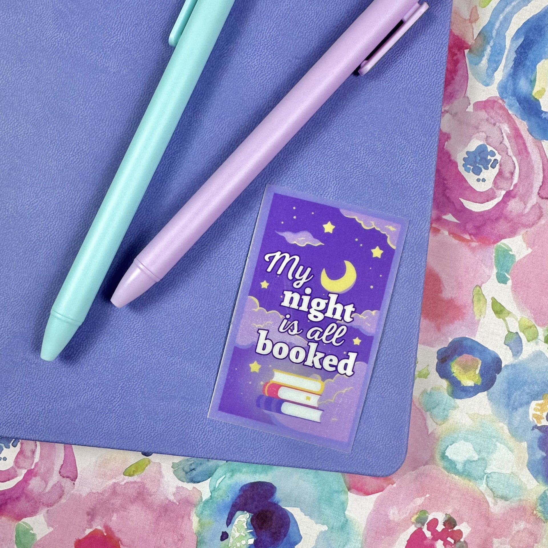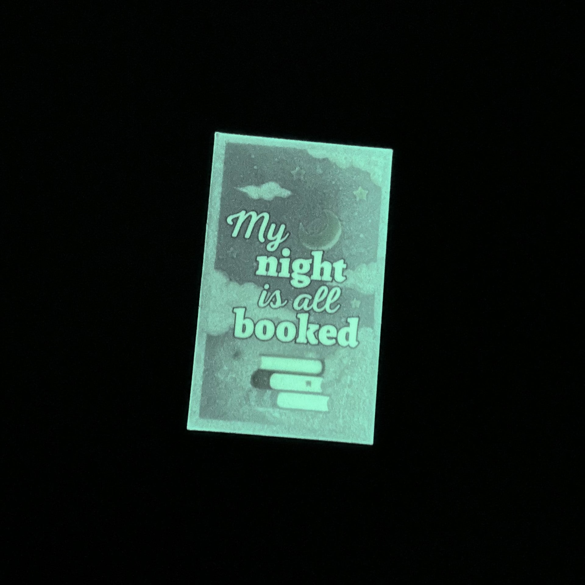 Illuminate your night-reading adventures with this glow in the dark vinyl sticker! With its colorful design, it'll make your reading accessories stand out -- even after the lights go out!