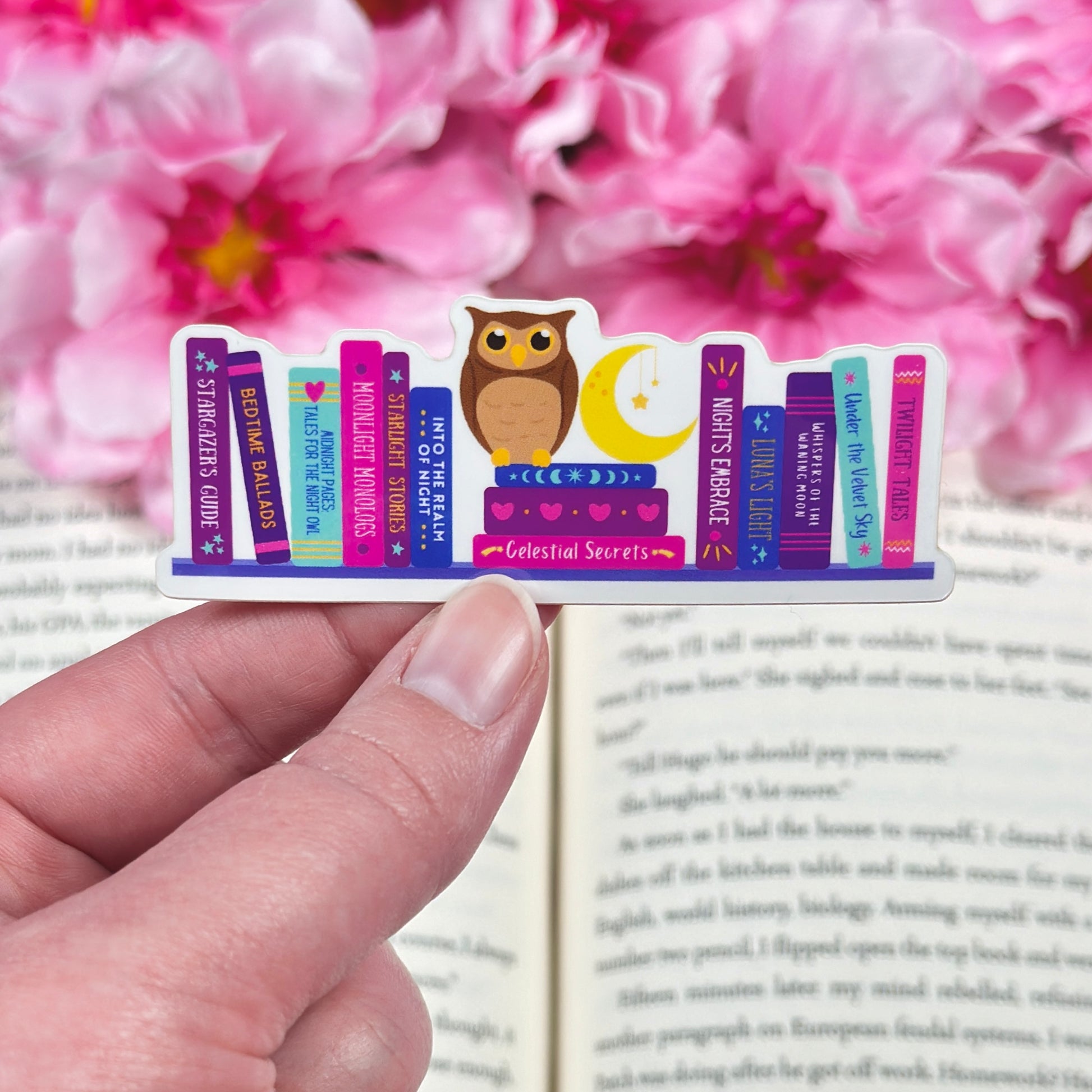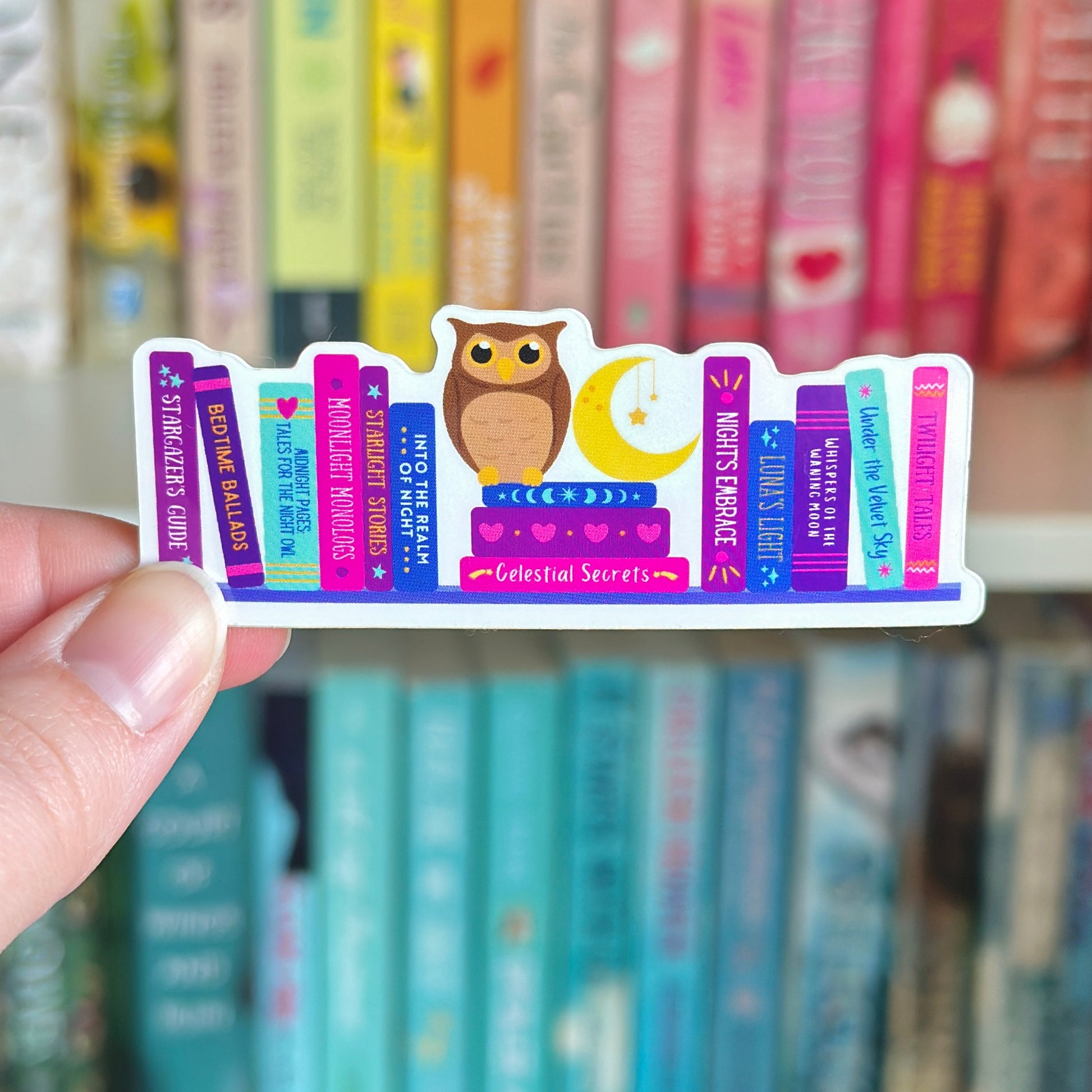 Bring your love for late night reading to life with our Late Night Reader Vinyl Sticker. Featuring a charming bookshelf design, with moons, stars, and a playful night owl, this sticker will add a touch of whimsy to any surface. Perfect for book lovers who like to read well into the night (let's be real, who reads at a normal hour anyways?!).