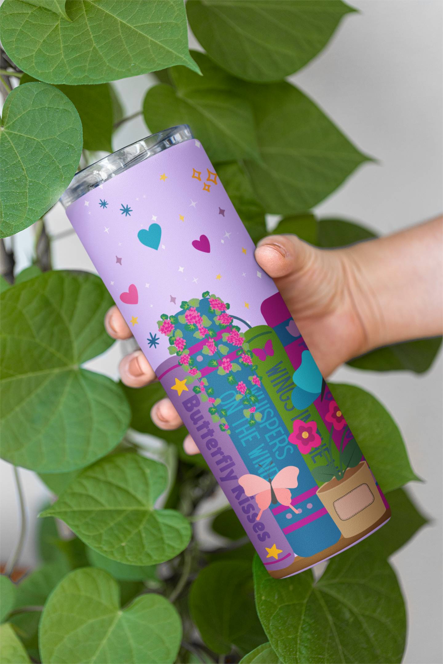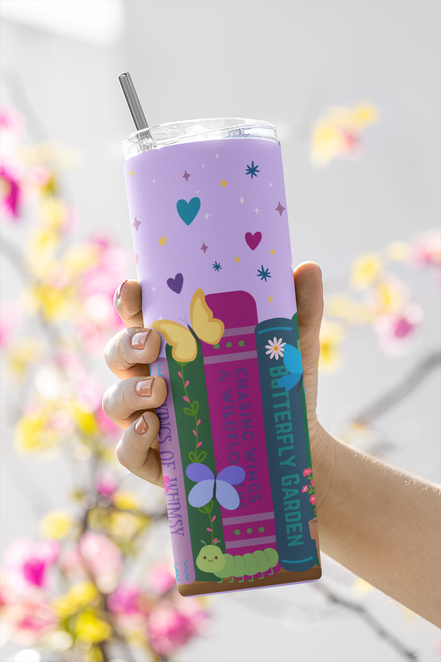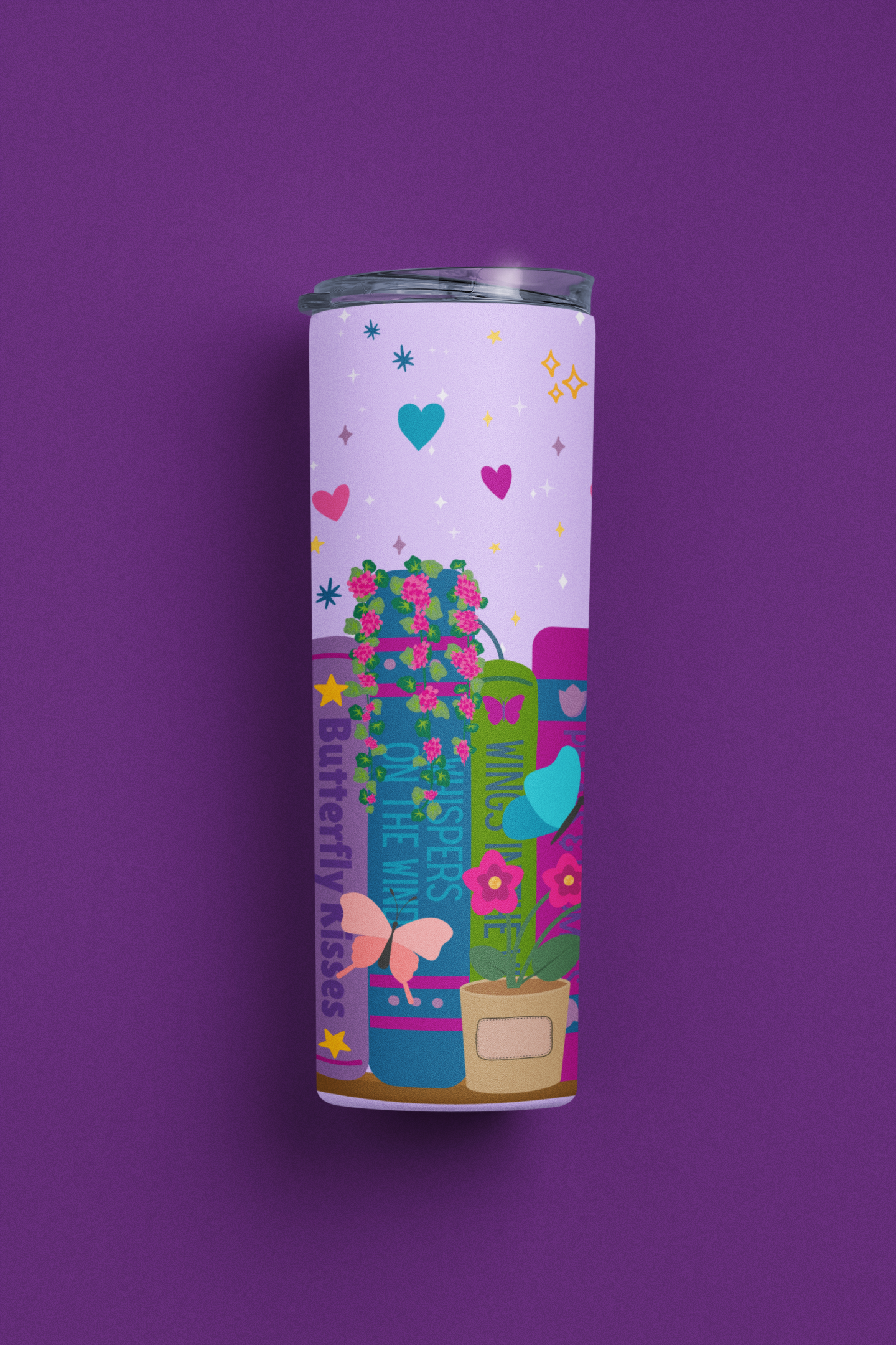 Get cozy with this butterfly bookshelf tumbler! Sip your favorite beverage while enjoying beautiful flowers and your favorite reads. With its slim design, it's easy to carry and will keep your drinks at the perfect temperature for hours. It is great for both hot and cold beverages and comes with a clear plastic lid, clear plastic straw and care instruction card. Perfect for book lovers and those looking to add a touch of magic to their daily routine.