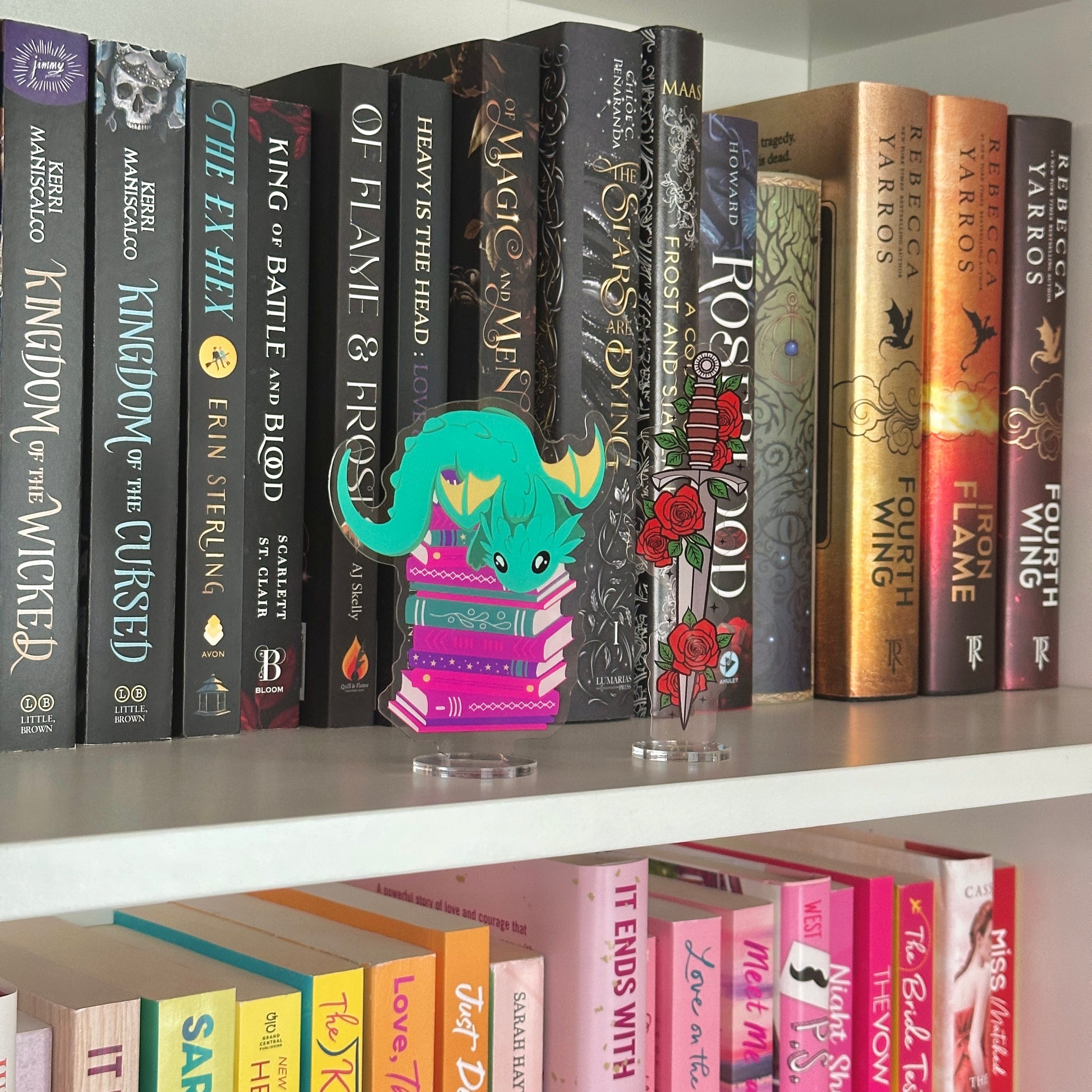 Add a touch of fantasy to your bookshelf with our Rose Dagger Acrylic Bookshelf Decor. Made from high quality acrylic, this decor piece features a stylish and unique design of a rose intertwined with a dagger. Perfect for romantasy booklovers who like to add a little personality to their bookshelves.
