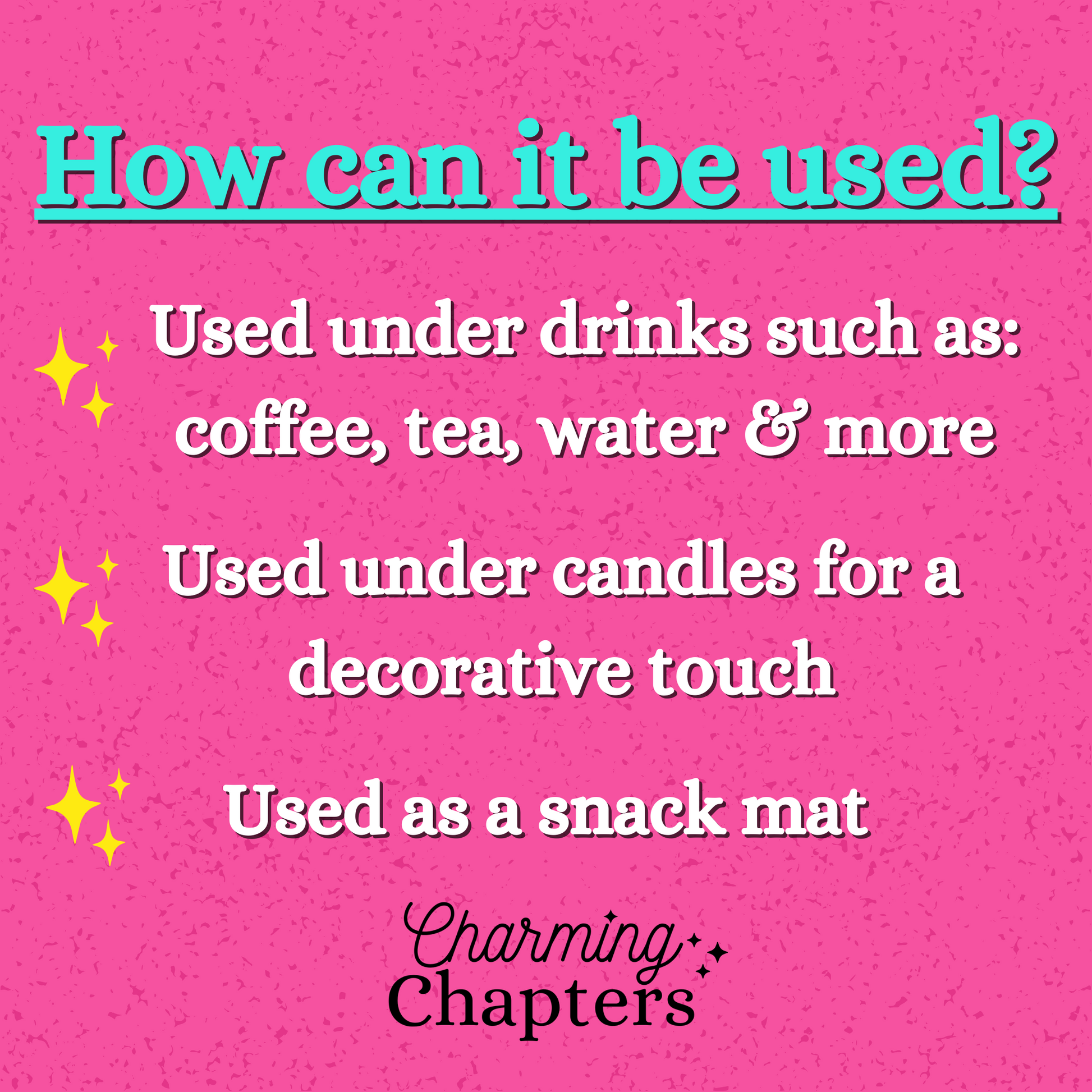 Please note that the book and props in the photograph are shown for demonstration purposes only. This listing is for the mug rug only. Each fabric coaster will vary in appearance due to fabric designs. Colors may appear different in person due to lighting and monitor settings. Our items are handmade and any uneven lines or imperfections are stitches of love! All sizes are approximate.