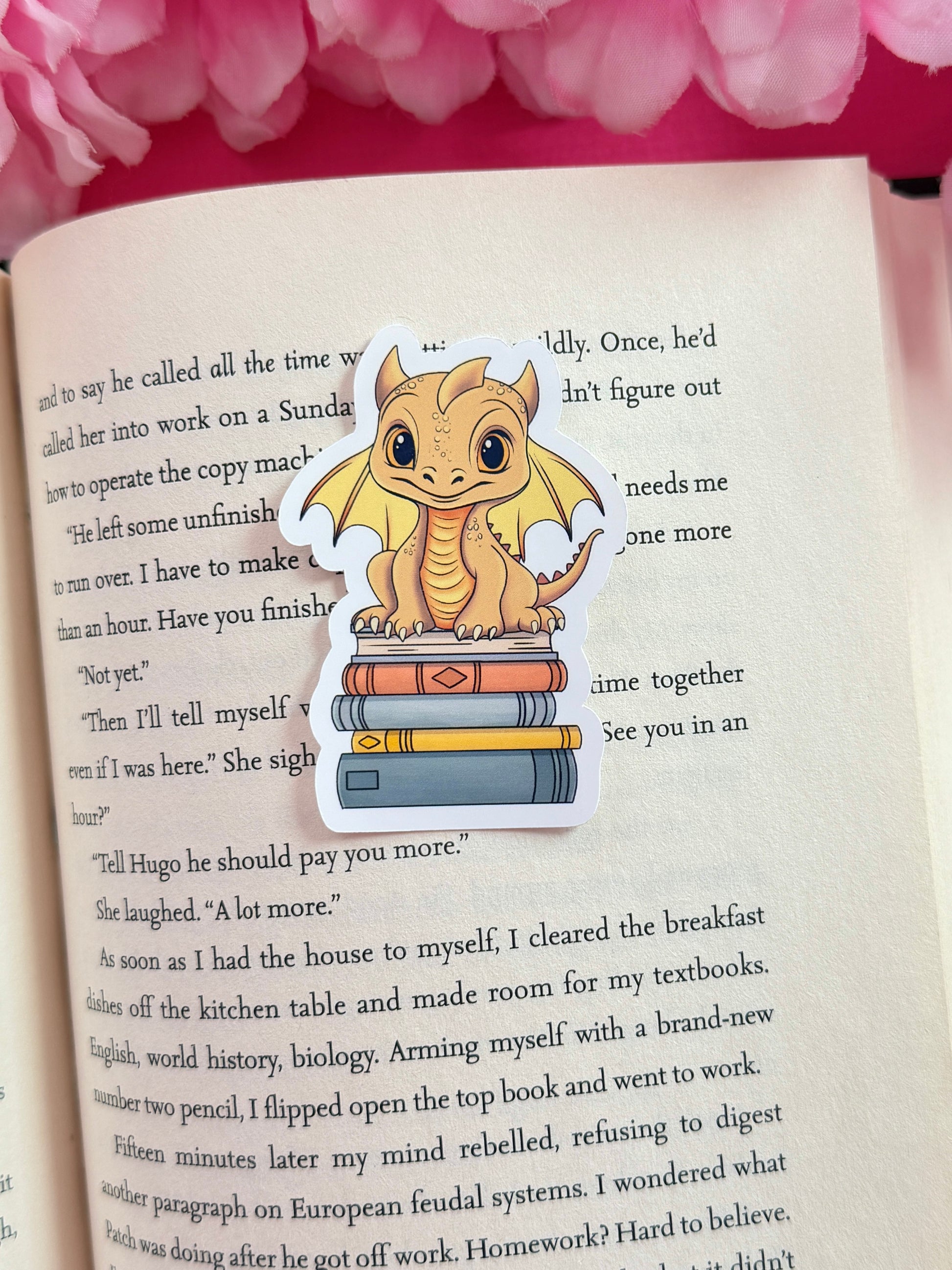 Unleash your inner book dragon with this vinyl sticker! This quirky design features a dragon lounging on a stack of books. It is the perfect way to show off your love for reading in a playful way. Stick it on your Kindle, laptop, water bottle, or anywhere else you want to add a touch of whimsy. (Sorry, no actual dragons included!)